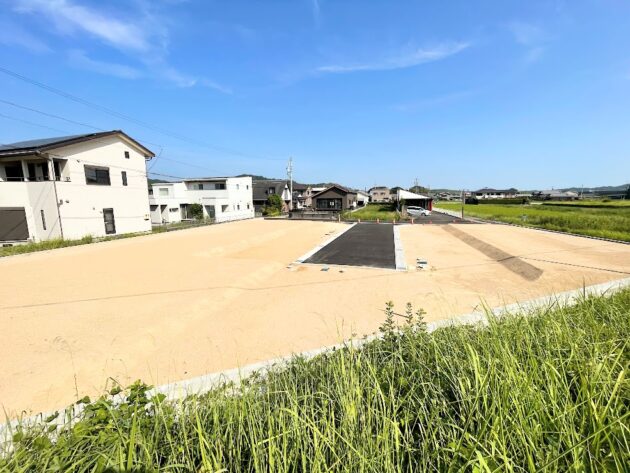 全4区画のきれいに整備された分譲地の一画、建築条件なしでご家族の理想の住まいを自由に建てられます。